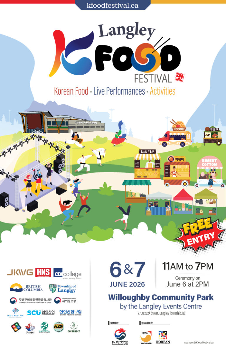 BC밴쿠버한인회는 오는 2026년 6월 6일부터 7일까지 양일간, Langley Willoughby Community Park에서 「Langley K-Food Festival 2026」을 개최합니다. 이번 축제는